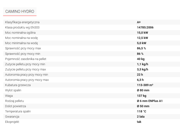 Model Camino Hydro stworzony został do ogrzewania mieszkań. Dzięki dużej modulacji mocy jest to piecyk uniwersalny. Hydraulika wbudowana jest w urządzenie, podobnie jak w kotłach gazowych. Wystarczy podłączyć go do instalacji. „Kotłownia” jest już w środku. To duża zaleta i oszczędności zarówno na kosztach montażu i materiałach. Wyposażony jest w tygodniowy programator. Jego niewielkie rozmiary i prosta konstrukcja, w połączeniu z najwyższą wydajność czynić go bardzo praktycznym.