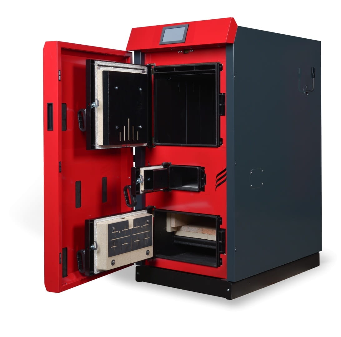 - Wygoda Użytkowania: Posiada kanał odciągowy, który minimalizuje zadymienie przy dokładaniu drewna. Możliwe jest dołożenie opcjonalnej zapalarkido drewna (z lewej lub prawej strony, możliwość instalacji później). Czyszczenie wymiennika ciepła (rurowego z turbulatorami) odbywa się półautomatycznieza pomocą rączki. Wszystkie przyłącza (hydrauliczne, kominowe, elektryczne) są umieszczone z tyłukotła dla estetyki instalacji.