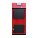 Wygoda Użytkowania: Posiada kanał odciągowy, który minimalizuje zadymienie przy dokładaniu drewna. Możliwe jest dołożenie opcjonalnej zapalarkido drewna (z lewej lub prawej strony, możliwość instalacji później). Czyszczenie wymiennika ciepła (rurowego z turbulatorami) odbywa się półautomatycznieza pomocą rączki. Wszystkie przyłącza (hydrauliczne, kominowe, elektryczne) są umieszczone z tyłukotła dla estetyki instalacji.