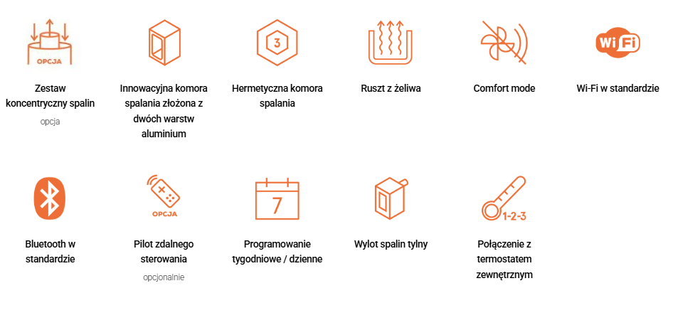 - Inteligentny termostat: Sekcja ta umożliwia tworzenie programów, które włączają i wyłączają piecyk na pellet. Dostosuj ustawienia dla optymalnego komfortu osobistego.