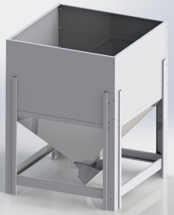 Zasobnik służy do przechowywania pelletu który następnie jest transportowany do palnika za pomocą podajnika ślimakowego. Zasobnik ma budowę modułową co ułatwia transport, wniesienie i montaż w miejscu jego eksploatacji. Istnieje możliwość wykonania zasobnika z pokrywą za dodatkową dopłatą.