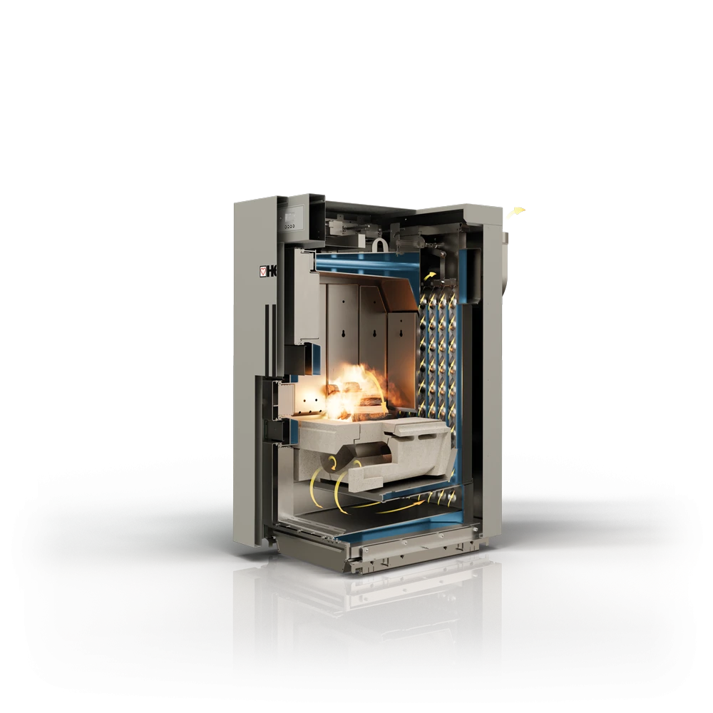 - Stabilne spalanie drewna dzięki automatycznej kontroli procesu