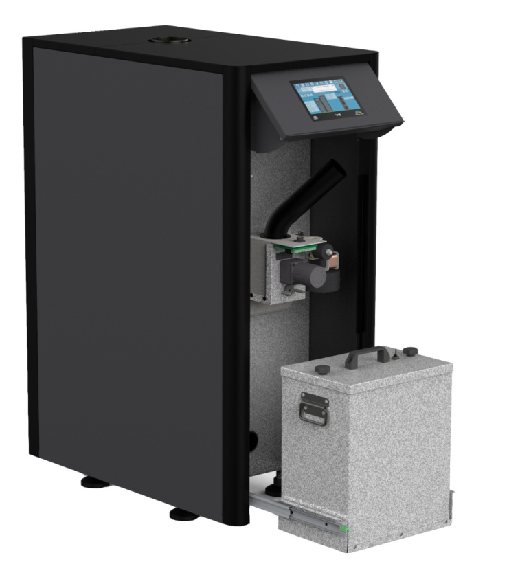 Kocioł posiada wygodny pojemnik na popiół. Dzięki kompresji popiołu opróżnisz go po spaleniu 3 do 4 ton pelletu.